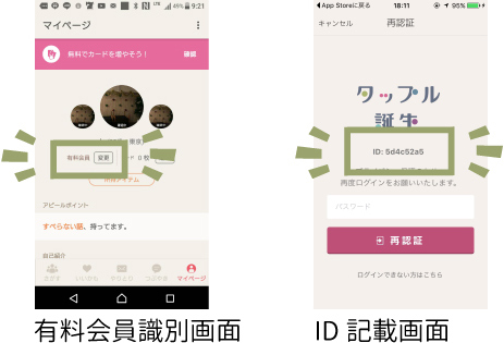「有料会員識別画面」の2点キャプチャをLINEにて送付